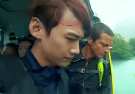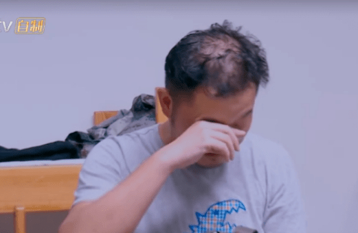 但镜头还是捕捉到了他头上的无奈,当他参加综艺后,头发被汗浸湿时,前面看着还好,但后面却露出了被汗浸湿的一大块儿,看起来就像是戴的假发头套顾头没顾尾。
