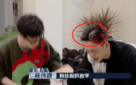 陈伟霆也在节目里说过自己脱发的问题很严重,但他又想要维持自己的高颜值,就只能靠戴假发片来拯救。