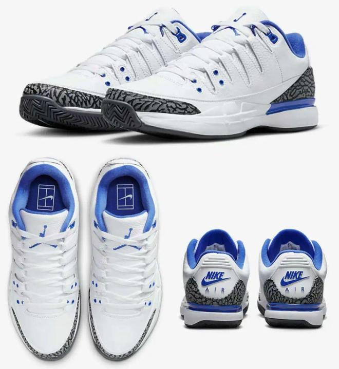 网球鞋与篮球鞋的首次结合,是2014年NikeCourt Vapors与Air Jordan 3融合产生的NikeCourt Zoom Vapor AJ3。