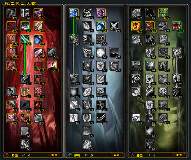 深血DKT天赋,我推荐使用46-13-12的点法,兼顾单刷、单拉生存能力、以及伤害与群拉能力,新手入坑我建议大家使用这个天赋,没毛病,可以直接抄作业。等自己对DKT有深度的了解之后,再研究其他天赋配点。