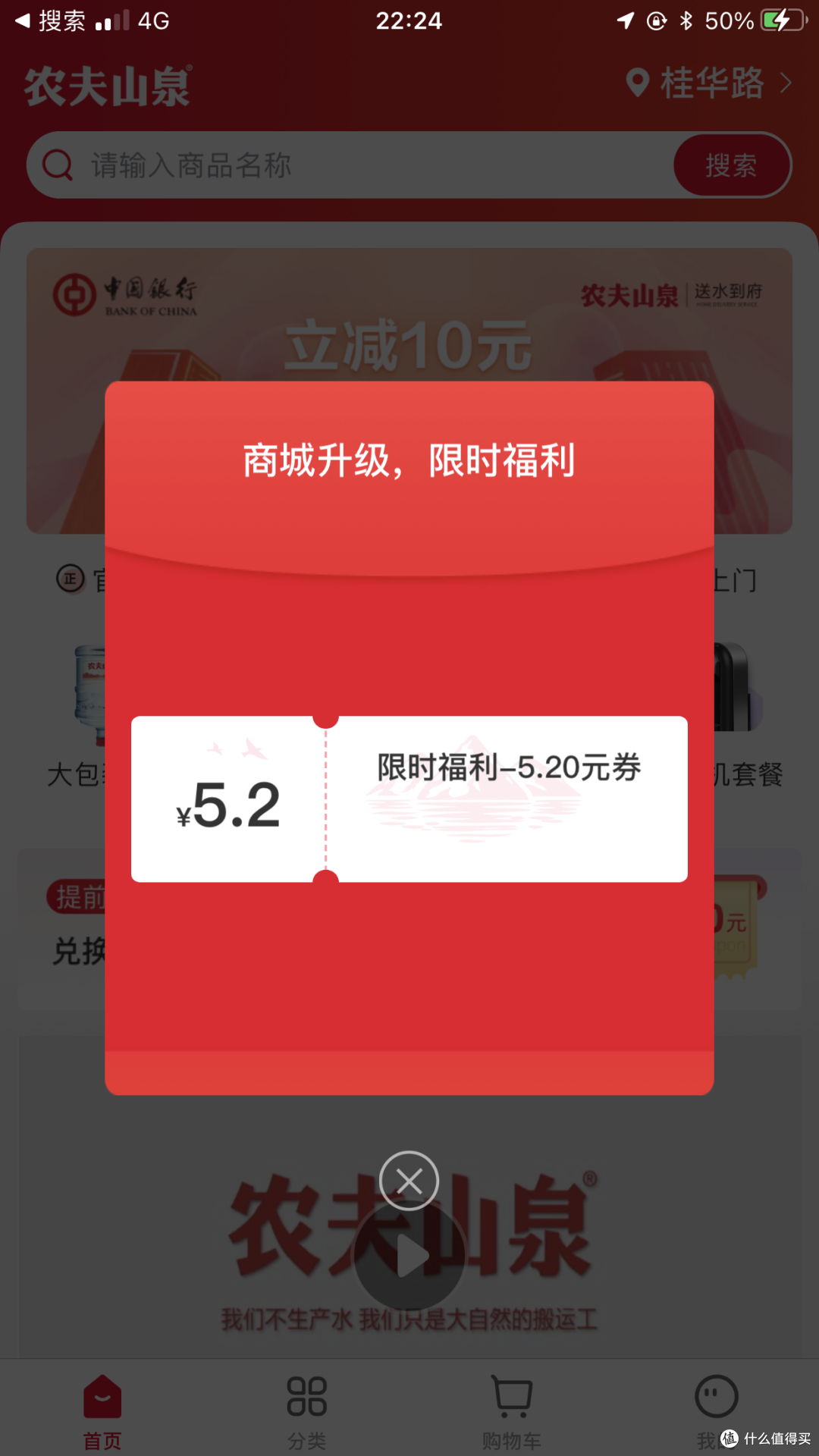 会自动弹出限时福利一个的5.2元无限制券的窗口,不用做任何操作,直接赠送到帐户;