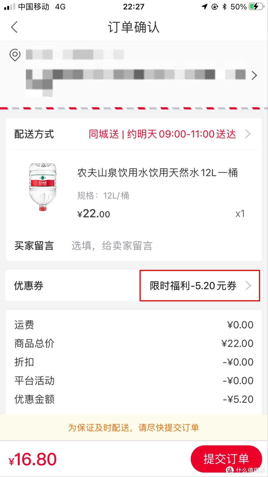 我们可以看到下单的时候已经默认使用了“限时福利-5.2元券”;